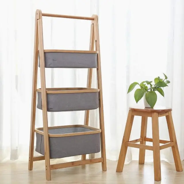 2/3-Tier Natural Bamboo Storage Rack with Fabric Baskets – Foldable & Multi-Purpose