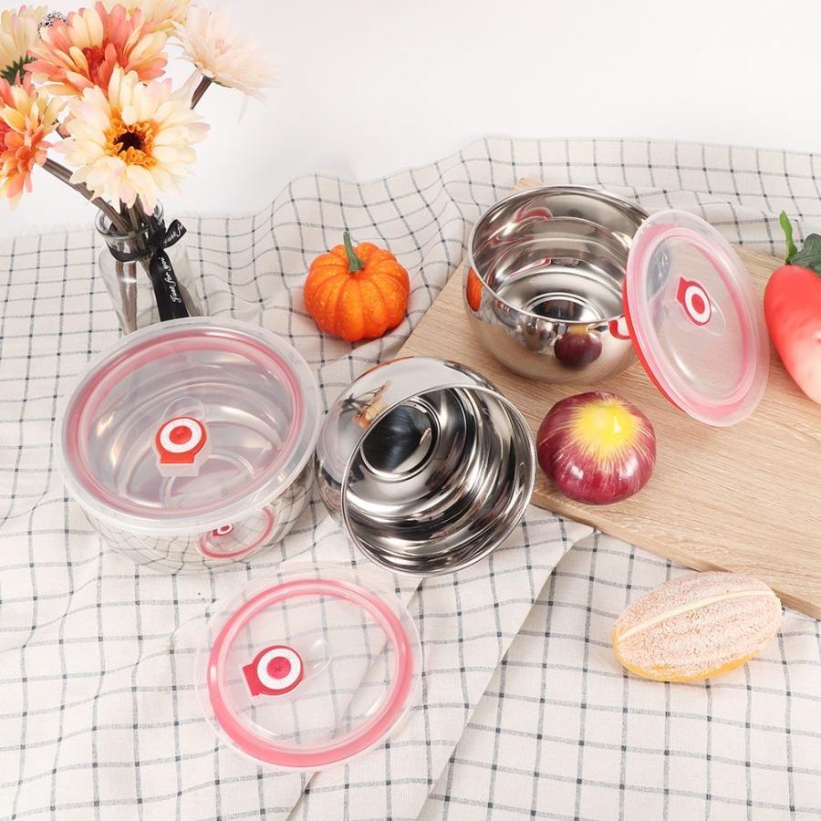 3 Sizes Stainless Steel Food Container with Airtight Plastic Lid