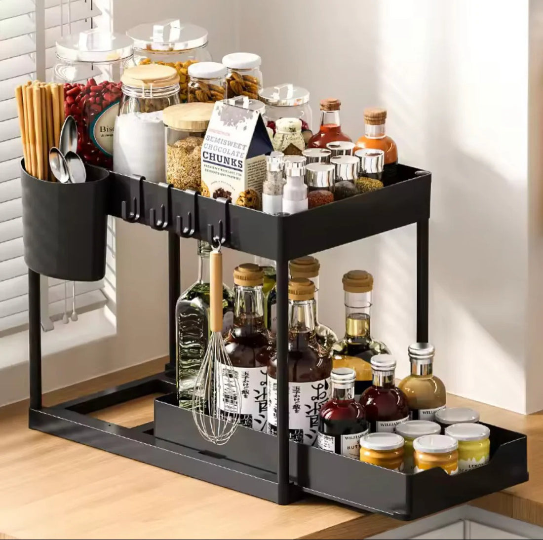 2 Tier Storage Rack With Hooks HangingMaximize your storage space with this versatile Double Deck...