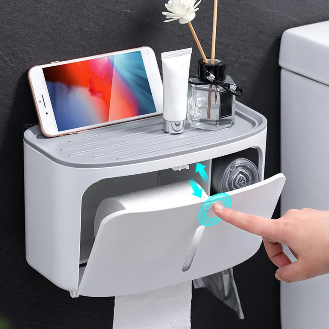 2-Tier Waterproof Wall-Mounted Toilet Paper Holder with Shelf Keep your bathroom organized, hygienic, and...