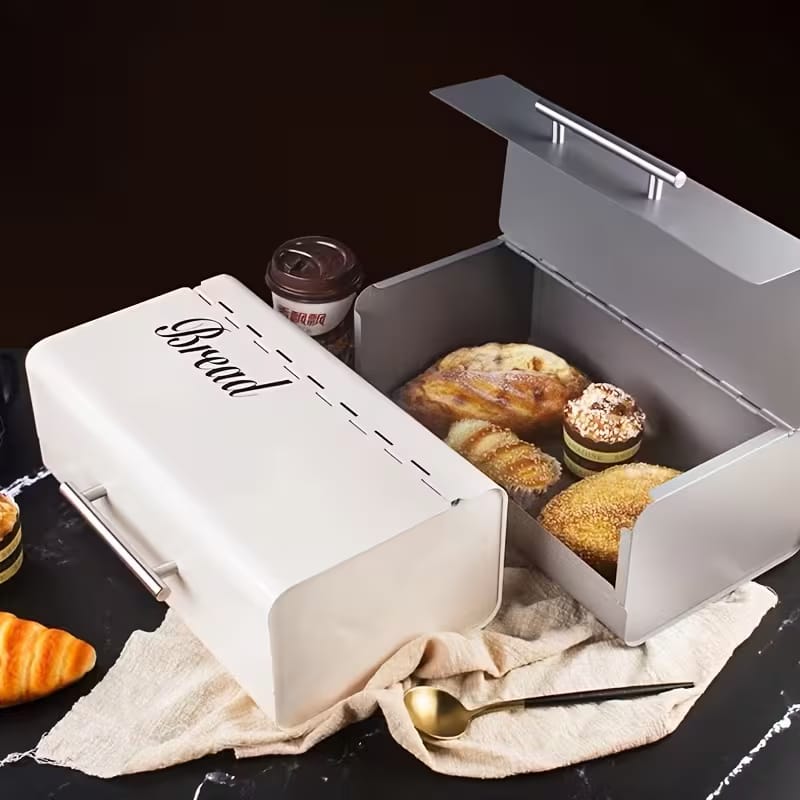 Vintage Metal Bread Box – Retro Kitchen Storage (White)