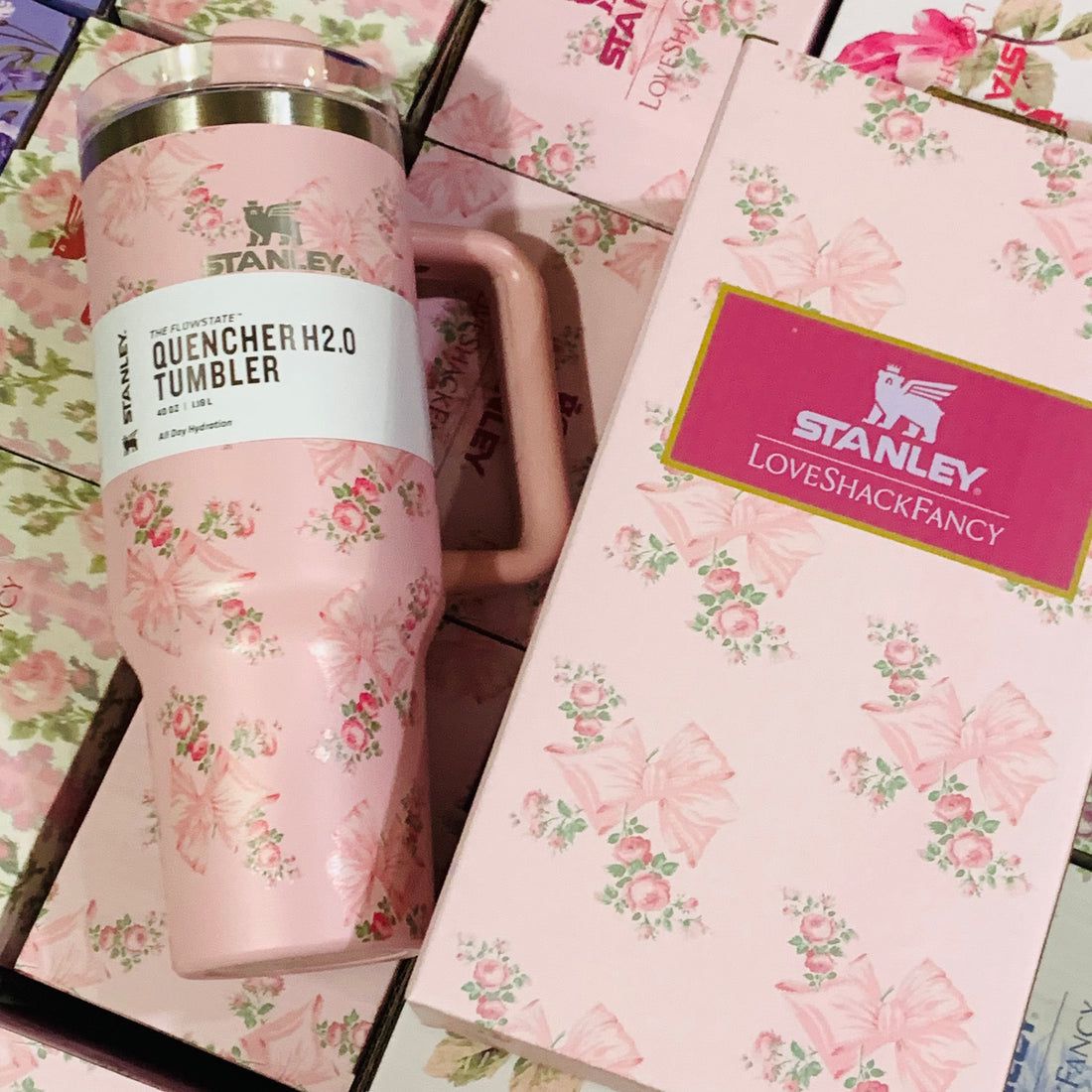 Add a touch of floral elegance to your everyday hydration with the STANLEY Love the Shakes Collection. These beautifully designed Quencher H2.0 Tumblers feature charming floral patterns and a matching stopper lid — perfect for keeping your beverages hot or cold while showcasing your personality and style.