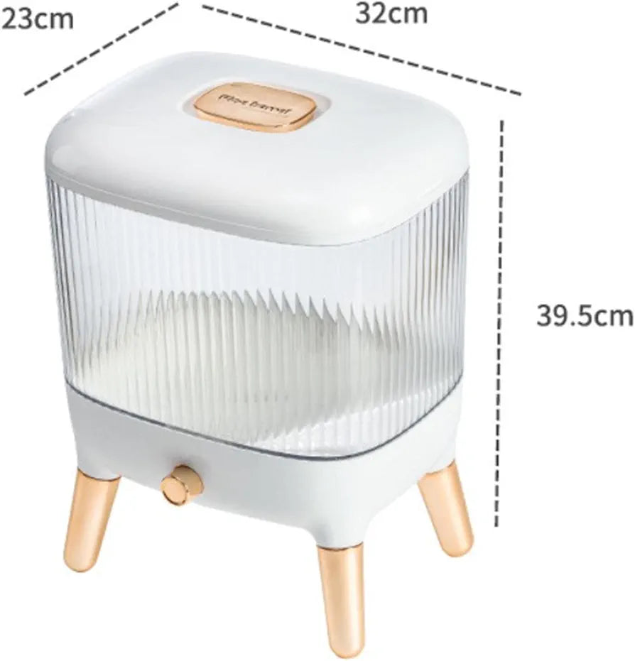 Upgrade your kitchen with this luxury-style 10kg Rice Dispenser, designed to keep your grains fresh, clean, and always within easy reach. With its modern white-and-gold aesthetic and transparent grooved body, it not only organizes your grains but also adds a touch of elegance to your countertop.