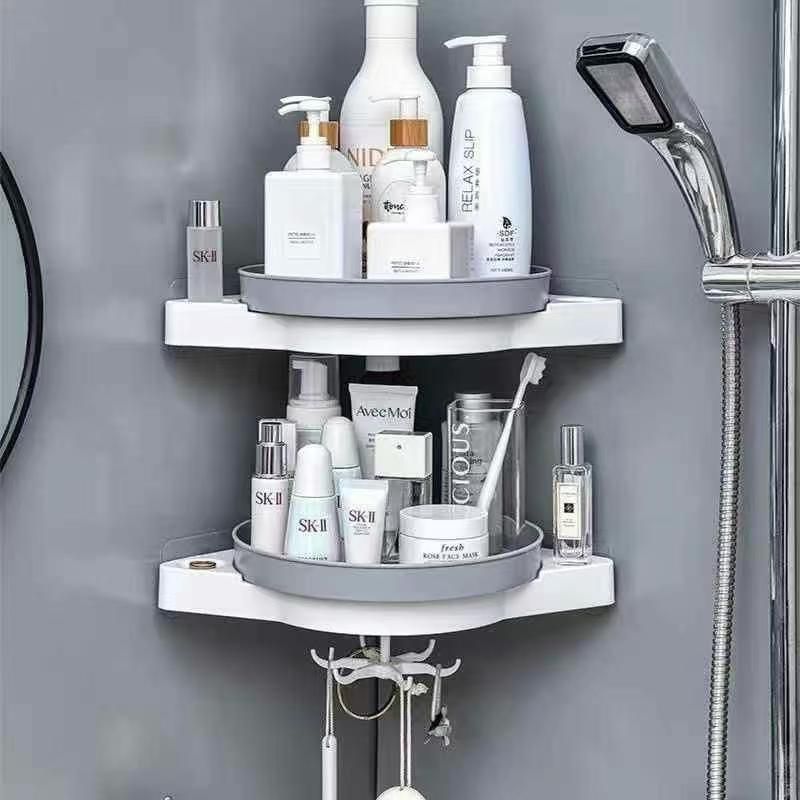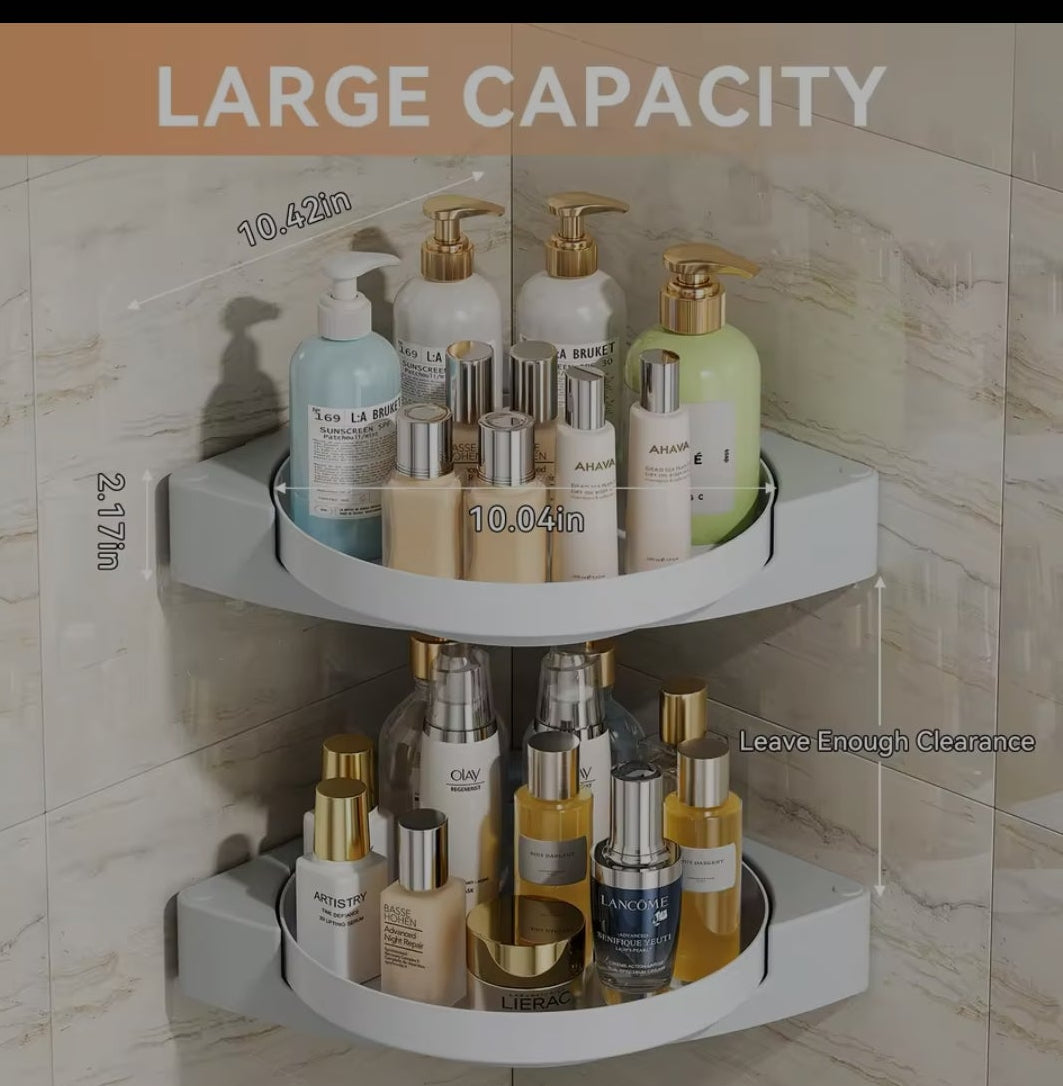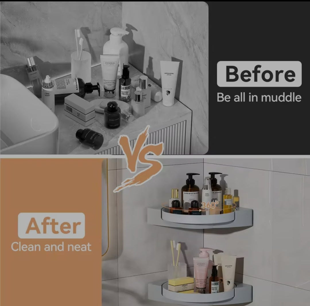 Maximize your bathroom corner space with this 360° rotating corner shelf. Stylish, space-saving, and perfect for organizing toiletries with easy access.
