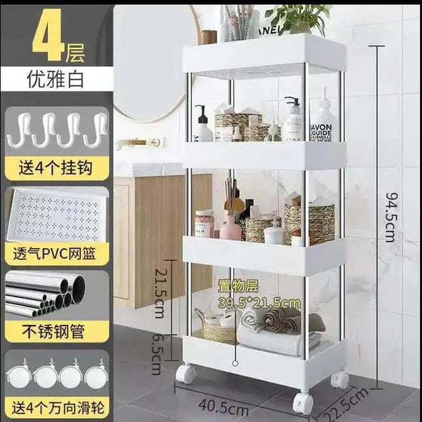 Maximize every inch of your home with this 4-Layer Slim Rolling Storage Trolley — a smart, space-saving solution designed to fit perfectly into narrow gaps between appliances, cabinets, or bathroom fixtures. With four sturdy tiers, smooth mobility, and durable construction, it’s the ideal organizer for any room.