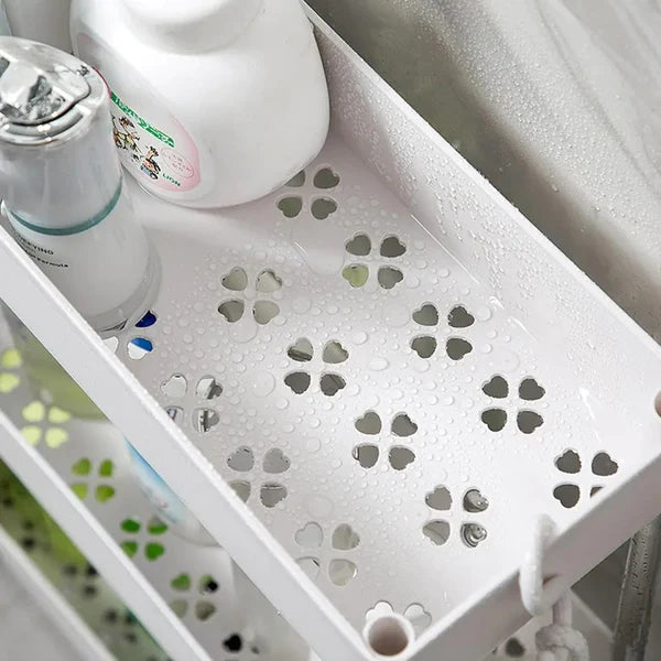 Its movable design makes it versatile for use in the kitchen, bathroom, laundry area, or even office. The ventilated plastic baskets ensure proper airflow, keeping items dry and fresh, while the side hooks (in select models) provide extra hanging space for smaller items.