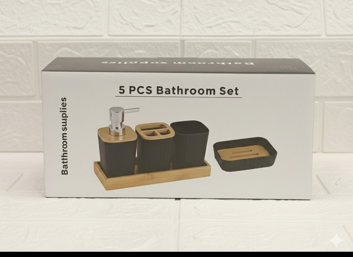 5 PCS Bathroom Accessories Set – Bamboo