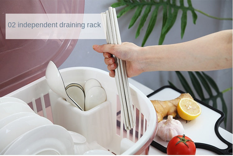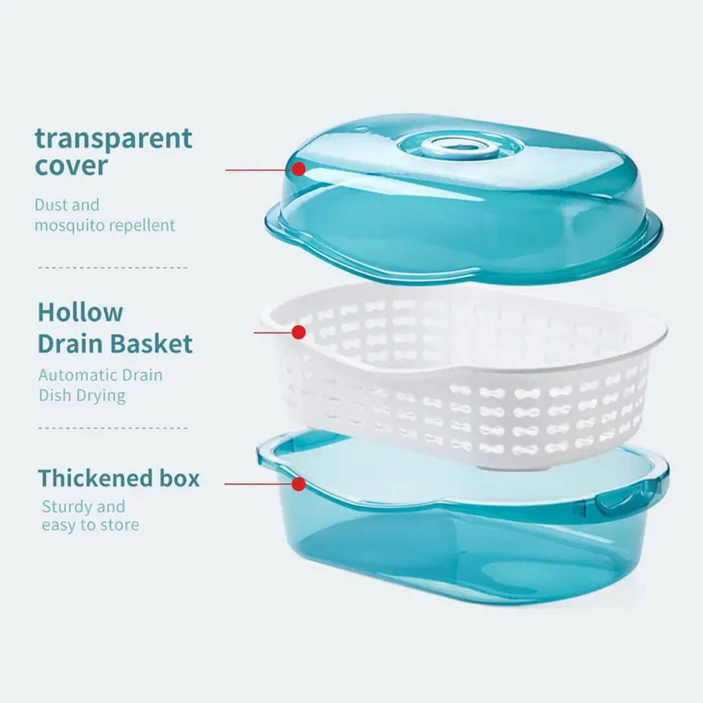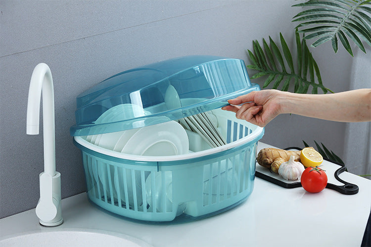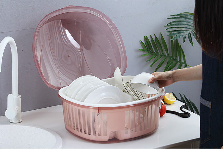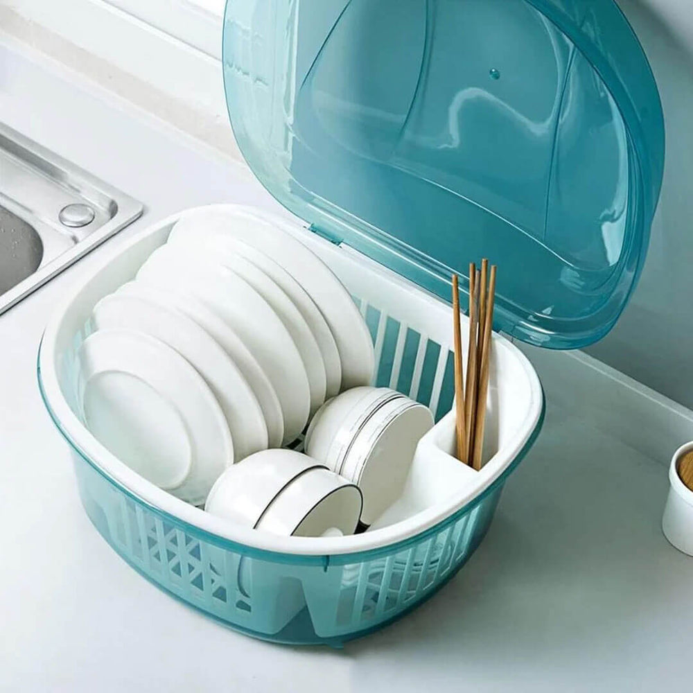 A spacious, hygienic, and dust-proof dish drainer designed to keep your kitchen clean and organized. The rounded shape maximizes capacity while the covered lid ensures your dishes stay protected from dust, insects, and moisture.