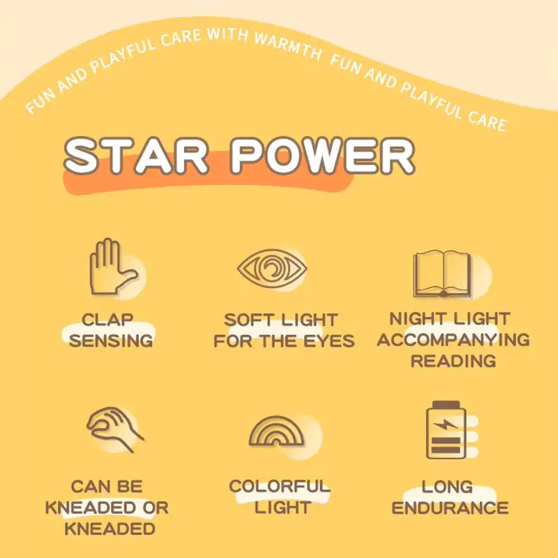 Bring warmth and wonder to bedtime with the Cute Star Silicone Night Light—a soft, squishy companion designed to comfort children and brighten any nursery. Its gentle glow, playful interaction, and safe materials make nighttime soothing and fun.
