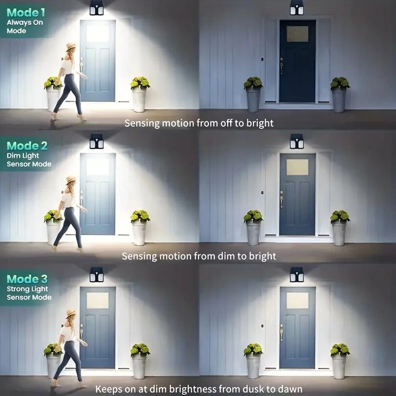 This sensor solar lamp has cutting-edge lighting solution designed to illuminate outdoor spaces efficiently and sustainably. I is crafted with top-tier materials, this lamp boasts superior functionality and eco-friendly attributes. Upon detecting movement, the lamp activates in high illumination, automatically turning off after 20-25 seconds when motion ceases. It is the perfect addition to any outdoor space. With energy efficient lighting, this lamp provides bright and reliable illumination. It ensures durability, weather resistance, and reliable performance in various outdoor conditions. With dimensions measuring 52.4 * 20 * 18.5CM, it provides substantial coverage for outdoor spaces. It delivers reliable performance even in challenging weather conditions. Moreover, its efficient battery life, charging for 8 hours during the day, allows for up to 7 days of use based on 100 sensor triggers per night.