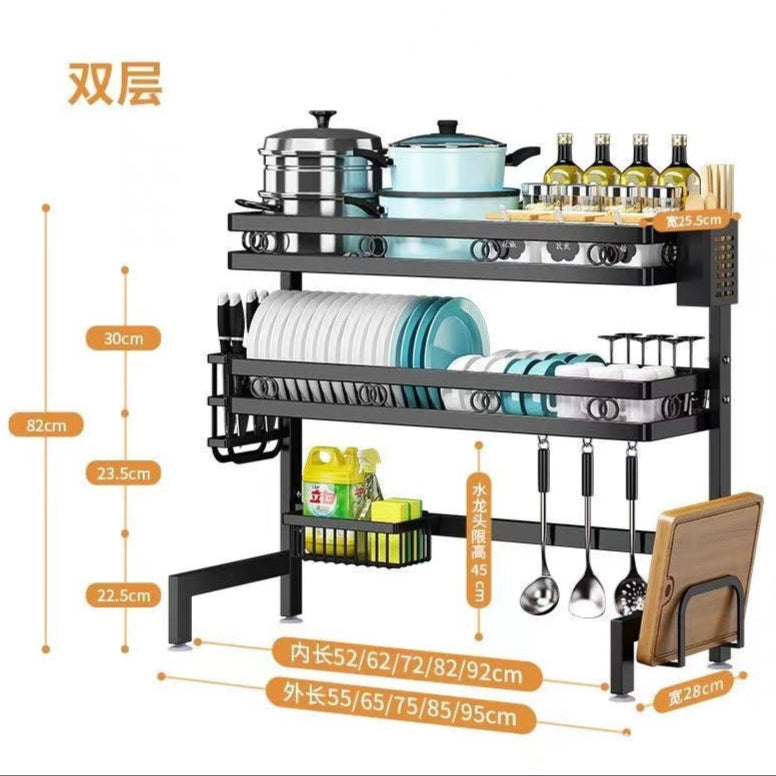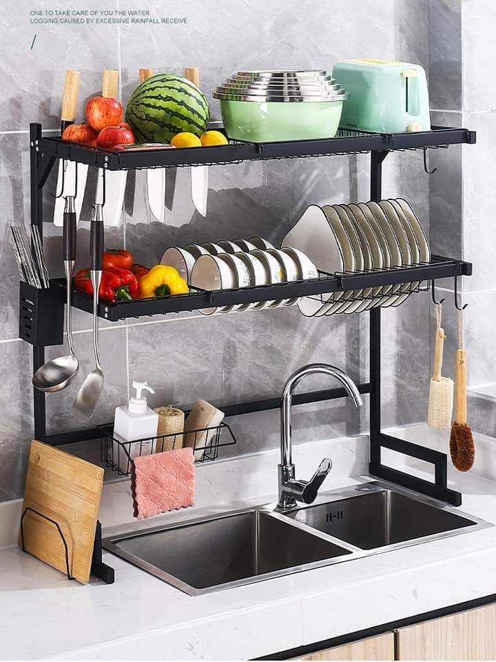 Revolutionize your kitchen with the Double Layer Over The Sink Rack. This smart storage solution provides extra room for drying dishes, holding utensils, and organizing cleaning essentials while saving precious counter space.