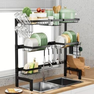 double-layer sink rack 🧽, over-the-sink dish rack 🍽️, space-saving dish drying rack 🏠, kitchen storage rack ✨, multifunctional sink organizer 🧺, durable over-the-sink organizer 💧.