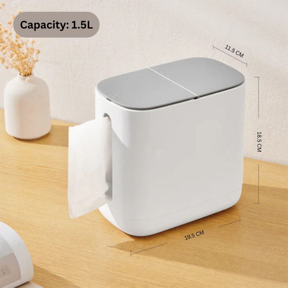 - 2-in-1 Design: Tissue holder + mini trash bin for clutter-free spaces