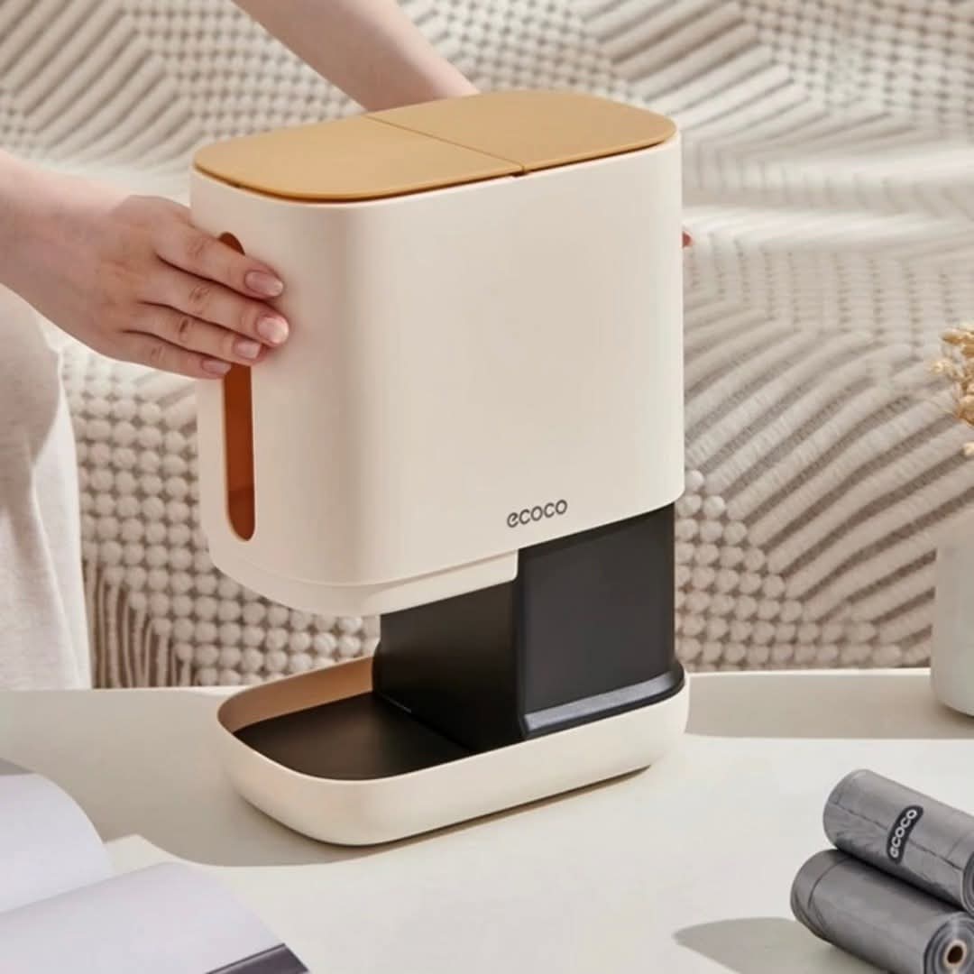 Keep your space neat and organized with the Ecoco Two-in-One Tissue Holder and Trash Bin. This smart desktop organizer combines a tissue dispenser and a small waste bin in one compact, modern design—perfect for desks, bedrooms, offices, and living rooms.