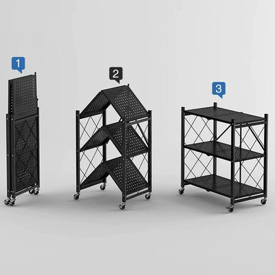 Maximize your kitchen efficiency with this 3-layer foldable metal trolley! Designed for convenience, this trolley offers ample storage while being easy to fold and store when not in use. Perfect for kitchens, dining areas, offices, or even as a serving cart! 🍽️🚛