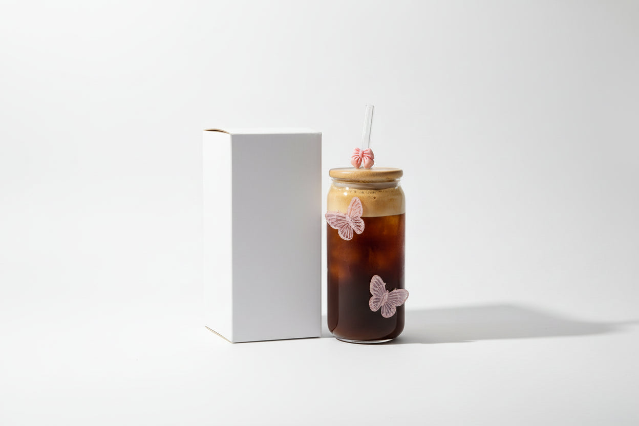 Add a touch of elegance to your daily drinks with this aesthetic glass tumbler. Featuring a soft pink butterfly print and a charming 3D butterfly bow, it’s perfect for cute yet classy drinkware lovers.