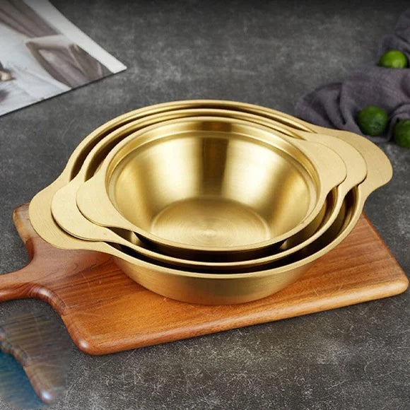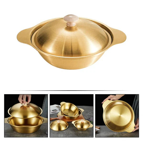 Golden Serving Bowl & Cooking Pot – With Lid & Side Handles