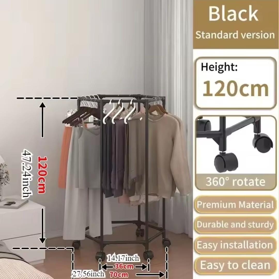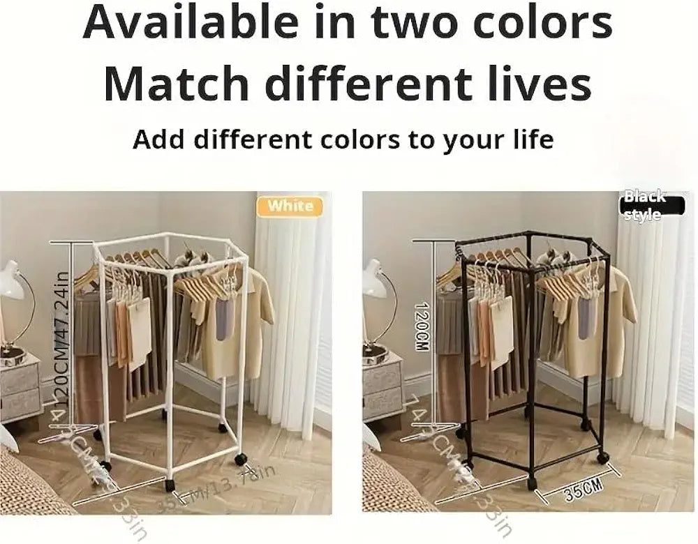 Hexagonal 360° Rotating Clothes Rack with Wheels