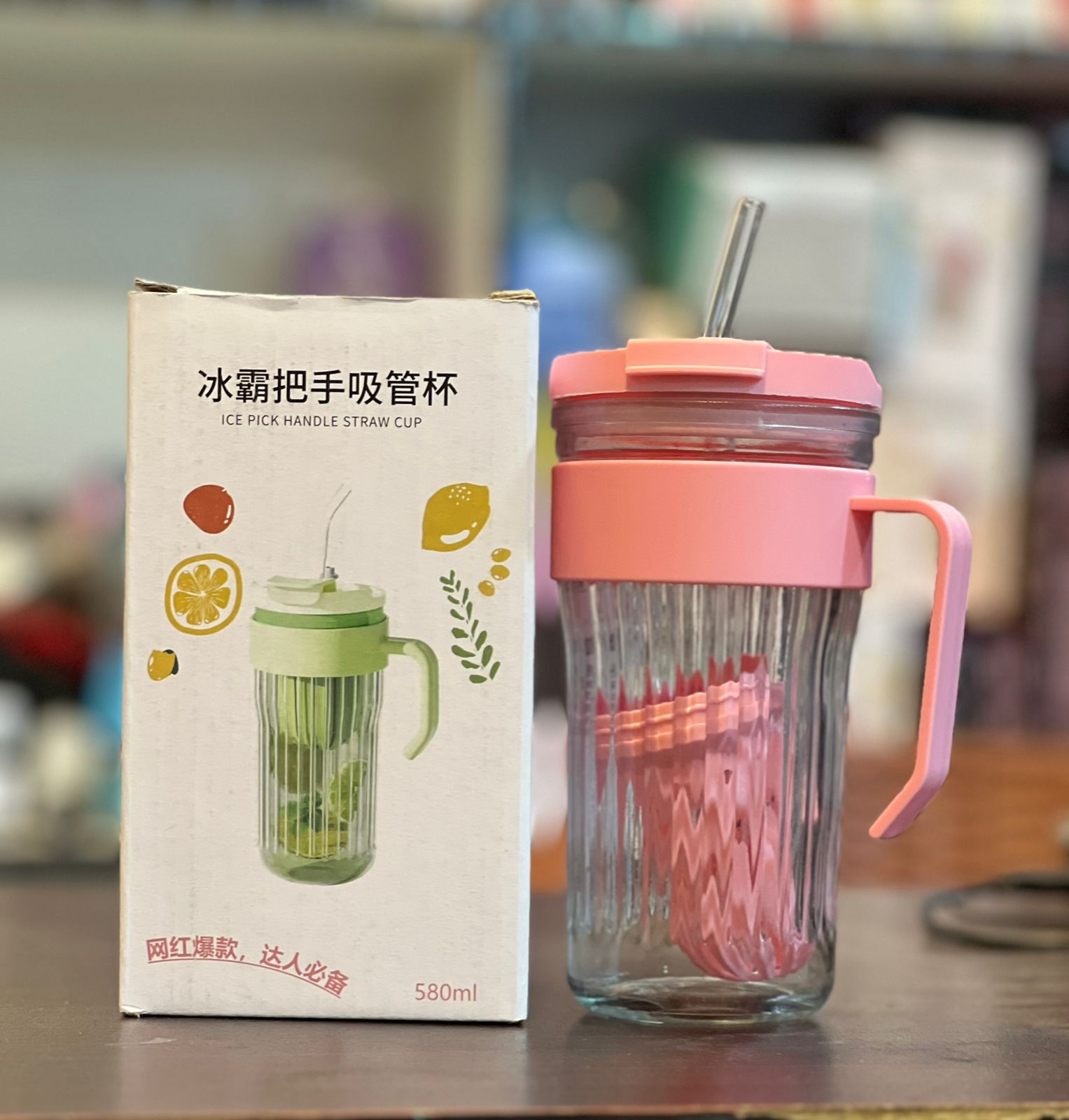 Ice Pick Handle Glass Straw Cup – 520ml