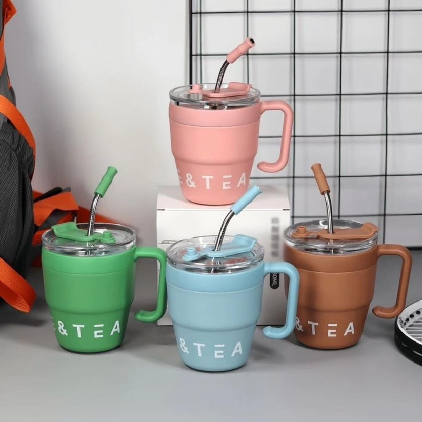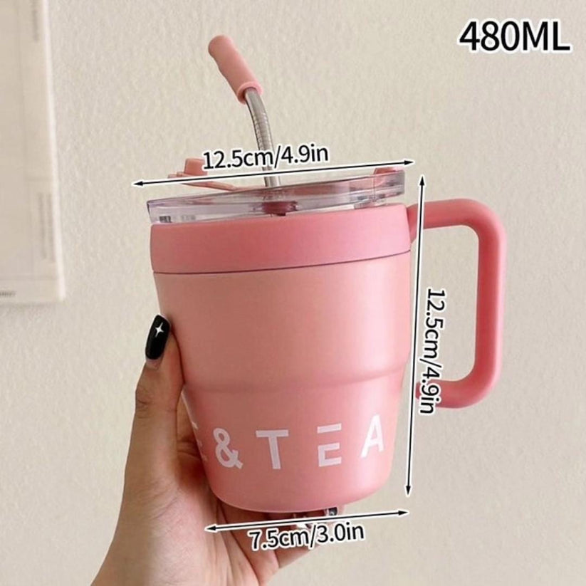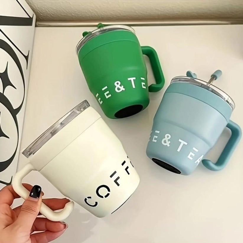 Office Coffee Thermal Cup – Stainless Steel Mug with Straw & Handle
