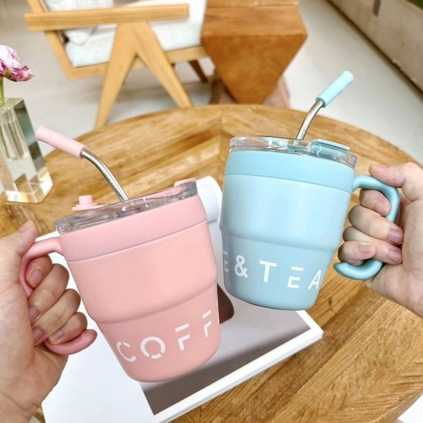 Korean Insulated Stainless Steel Coffe Mug With Straw, 460ml