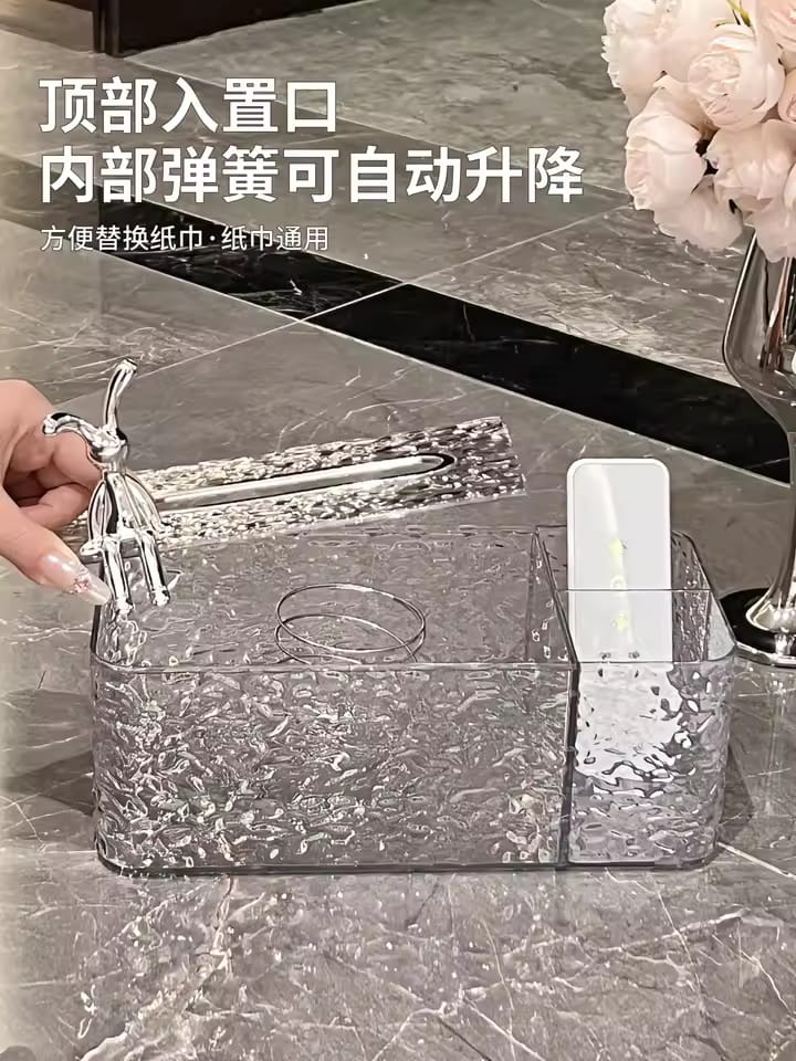 Add a touch of elegance to your living space with this luxurious and creative tissue box. Designed for both beauty and practicality, it serves as a tissue holder and remote control organizer — perfect for your living room, coffee table, or office desk.