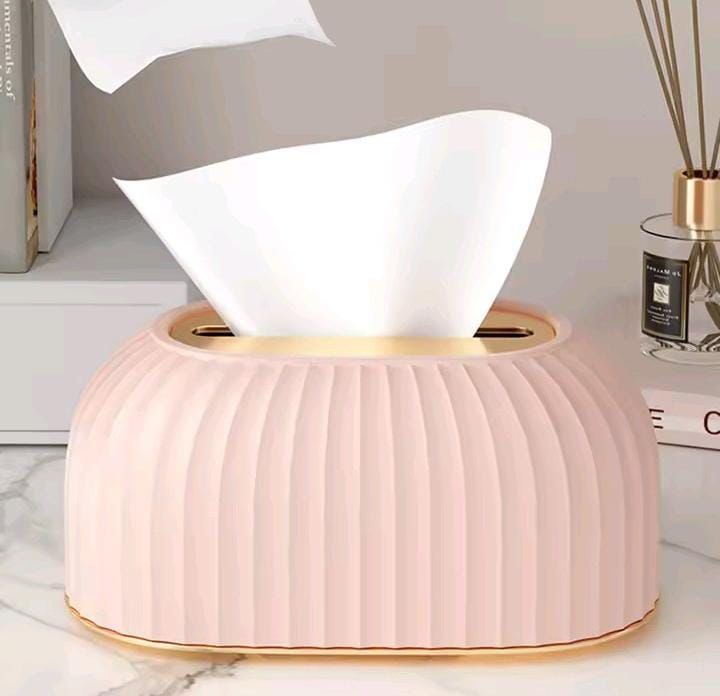 Upgrade your space with this elegant tissue box featuring a built-in spring mechanism that lifts tissues as they’re used—so the last sheet is always easy to grab. Its pleated body and luxe lid add a modern, premium touch to any room.