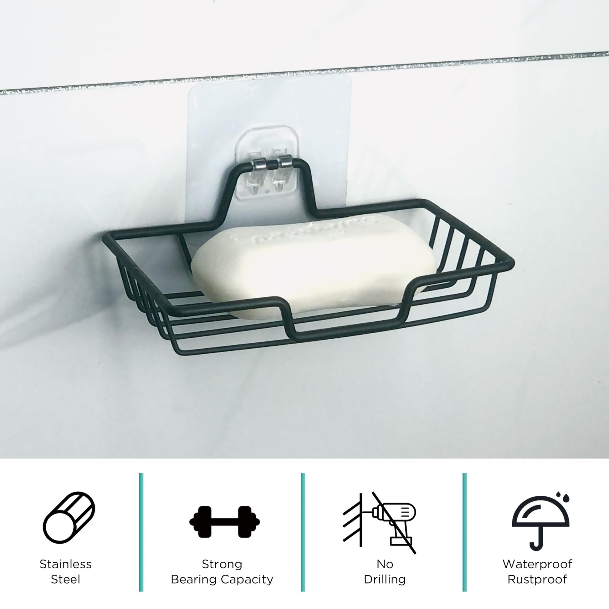 Keep your soap dry and your bathroom clutter-free with this durable metal soap tray! Designed with a strong adhesive stick-on for easy installation, it provides a rustproof, water-draining solution for your bathroom or kitchen. ๐ฟ๐