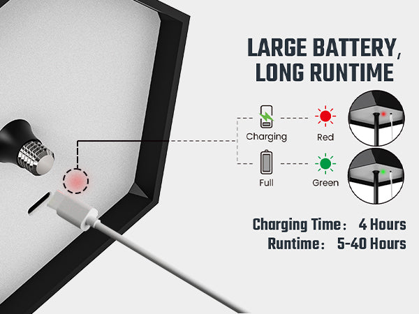 Enjoy 8 to 40 hours of uninterrupted light depending on brightness level—perfect for bedside use, dining setups, events, and outdoor evenings.