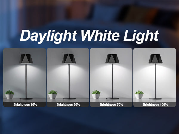 • Cool White (6000K) – bright, crisp lighting for reading or work