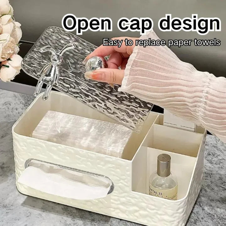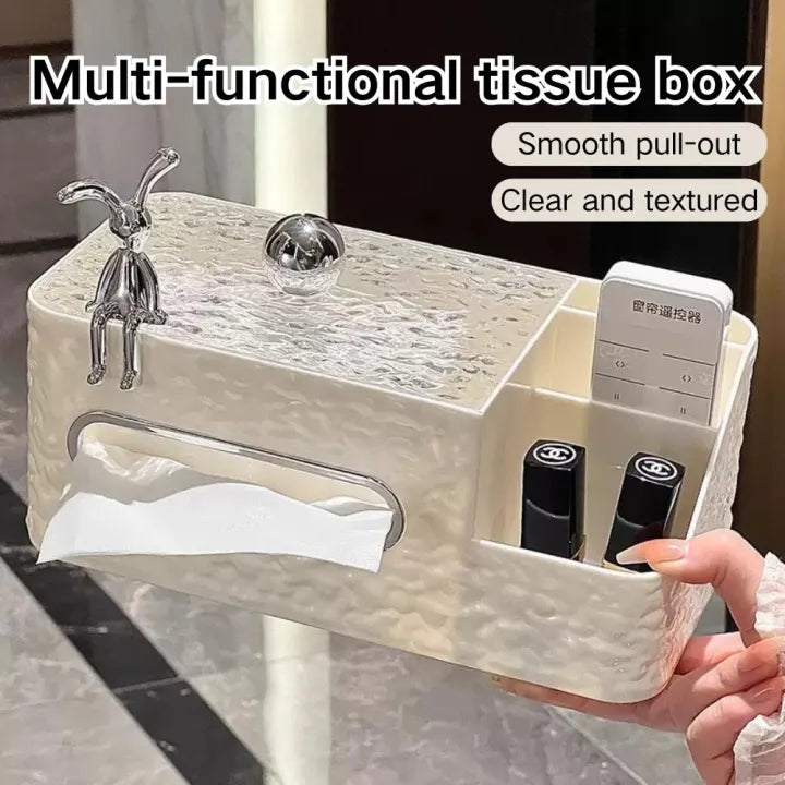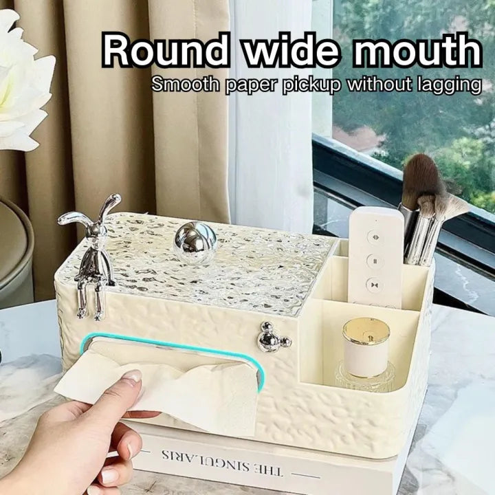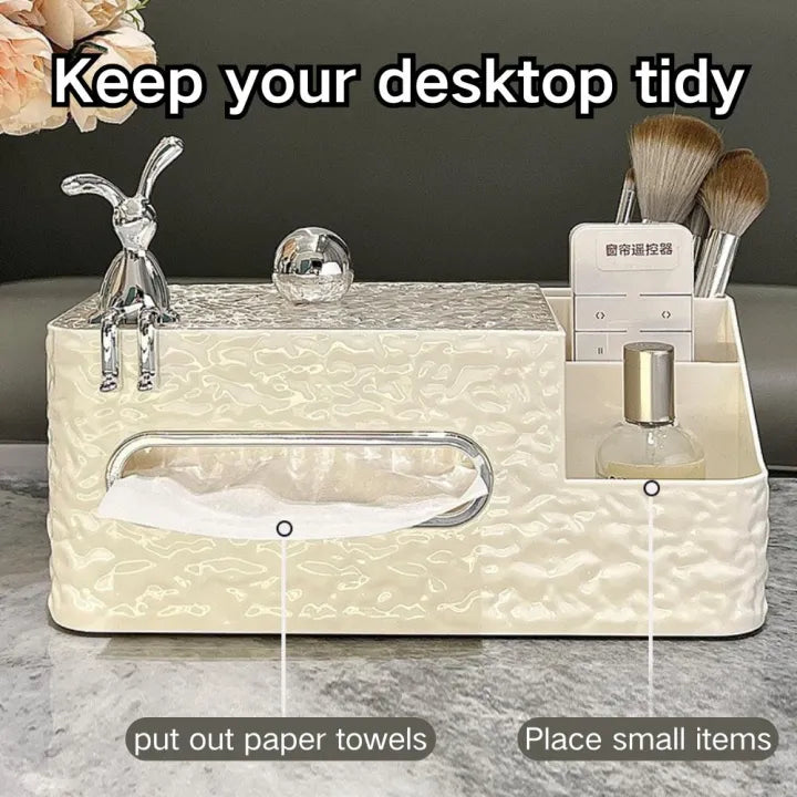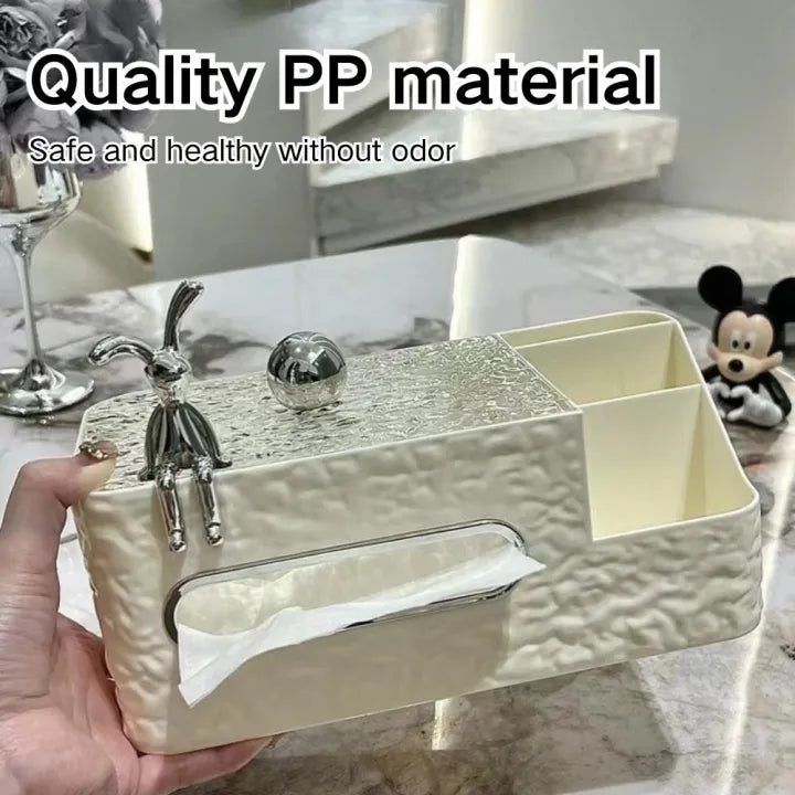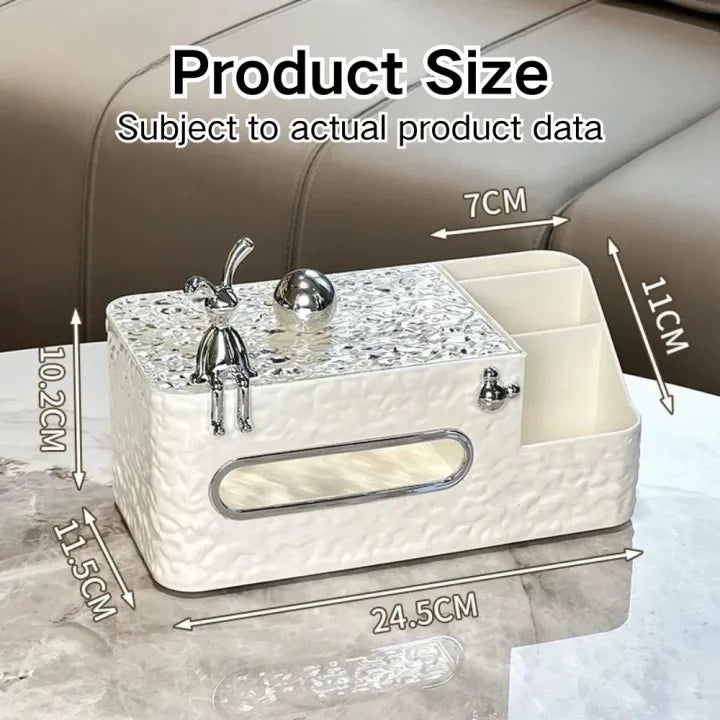 Upgrade your space with this elegant, all-in-one Tissue Box and Organizer—perfect for keeping your essentials neatly arranged while adding a touch of charm to any room. Its premium textured finish and cute metallic rabbit accent make it both functional and stylish.