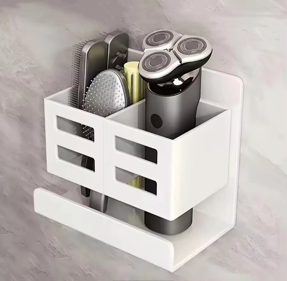 Keep your bathroom neat and clutter-free with this multifunctional hanging rack. Designed from durable, high quality plastic, it offers a practical and stylish way to store your everyday essentials. Perfect for holding toiletries, cosmetics, and grooming accessories, this organizer easily hangs on walls, mirrors, or shower doors making the most of your space. Its sleek design complements any modern bathroom décor while keeping everything within easy reach. Ideal for sinks, vanities, and showers alike.