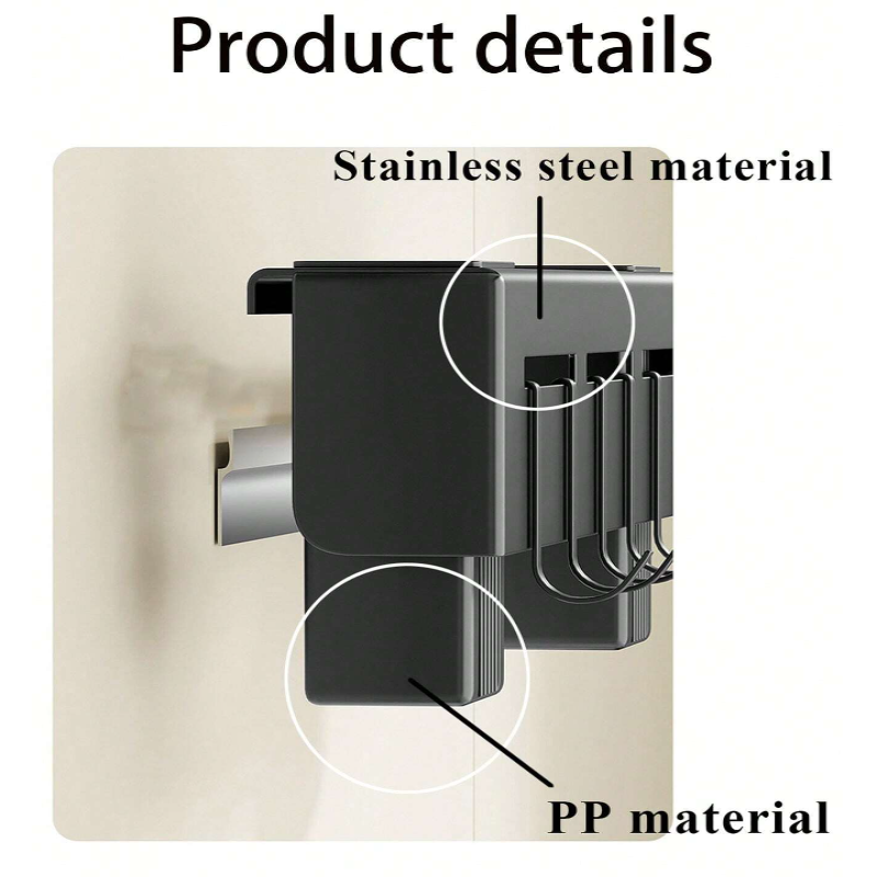 - 7-in-1 Smart Storage: Knife holder, dual breathable cutlery tubes, towel bar, and multiple sliding hooks for utensils, mugs, or tools.