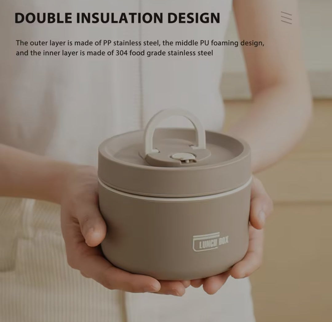 Enjoy fresh, warm, or chilled meals anywhere with this Portable Insulated Lunch Container Set. Designed for school, office, travel, and picnics, it features a triple-layer structure with a 304 stainless steel inner bowl, PU insulation, and a durable PP outer shell for excellent heat retention.