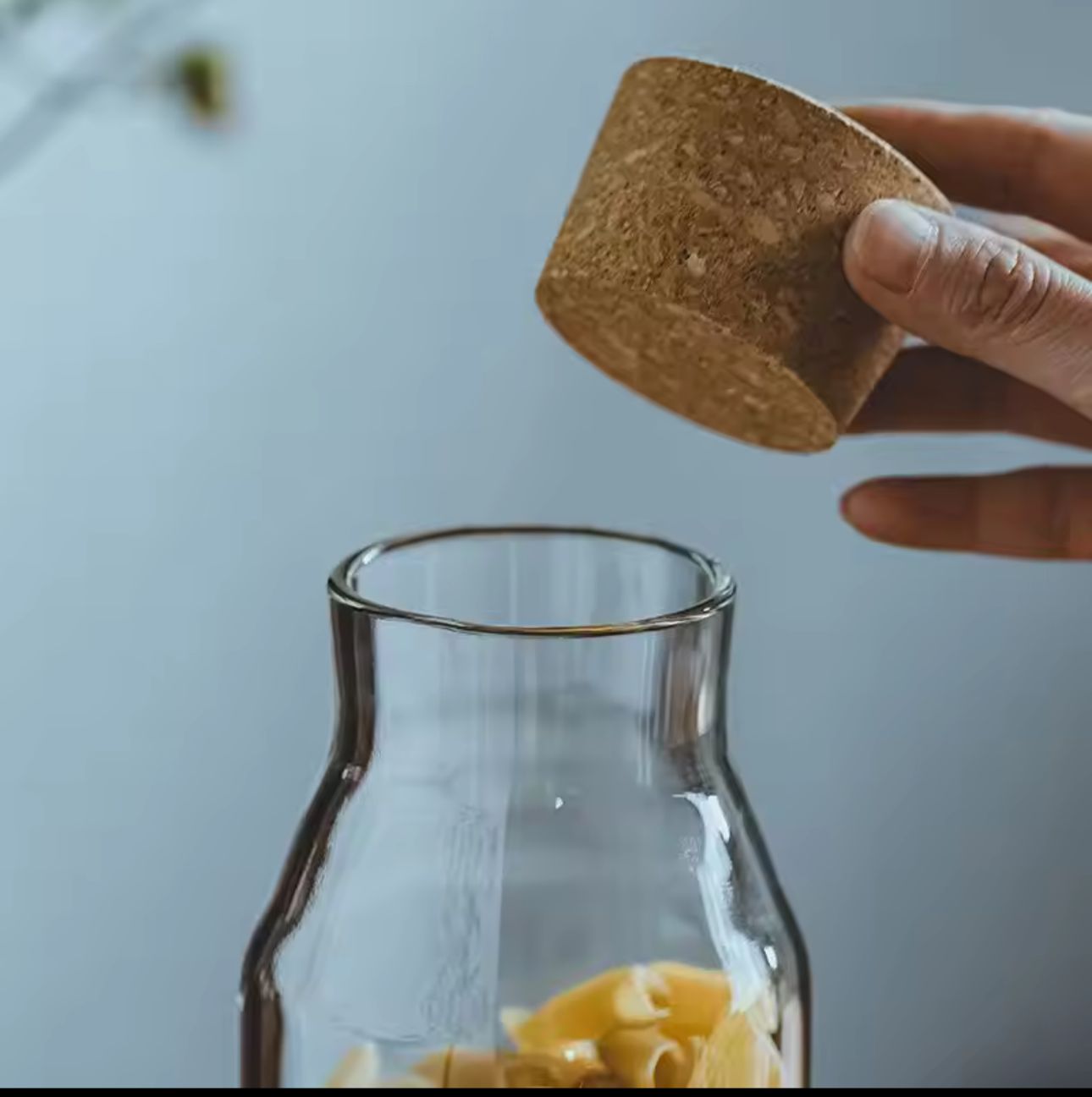Organize your kitchen in style with these elegant borosilicate glass jars, featuring an eco-friendly wooden cork for a secure, airtight seal. Perfect for storing coffee, pasta, oats, dried beans, spices, or even using as a beverage bottle.