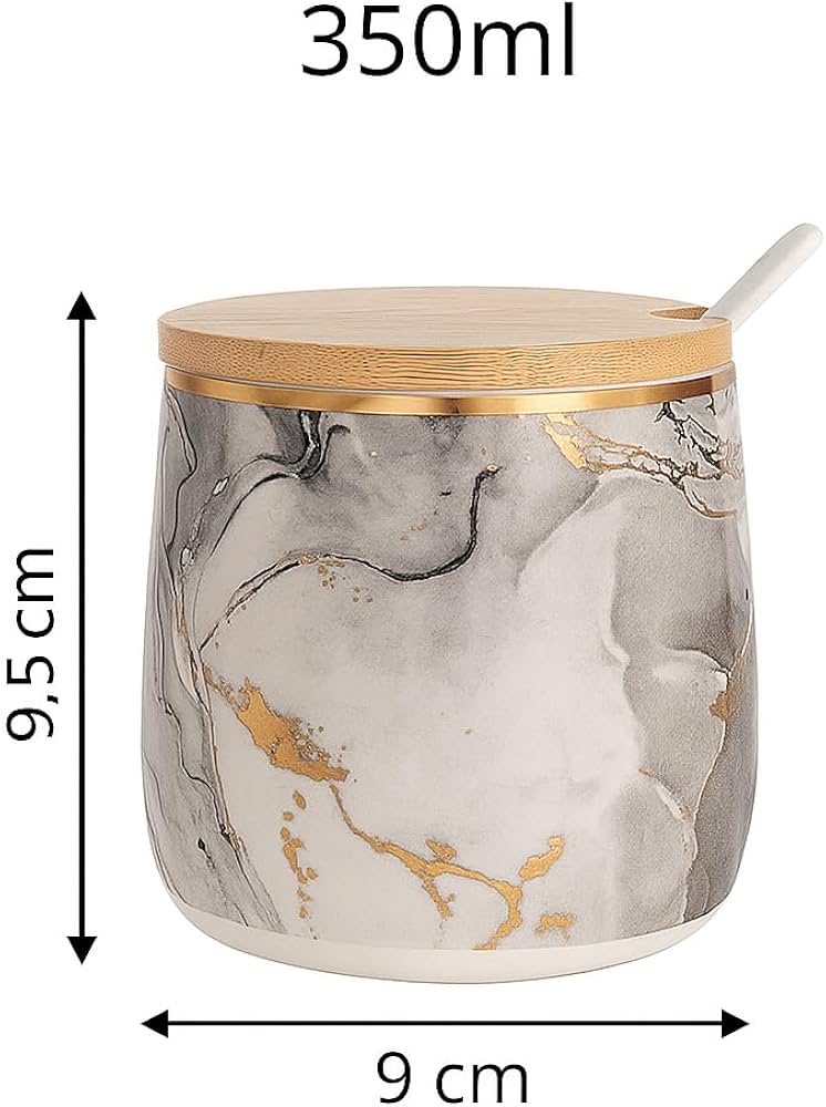 Premium Grey Aurora Marble Ceramic Condiment Jar Set – 3 Pieces (350ml Each)