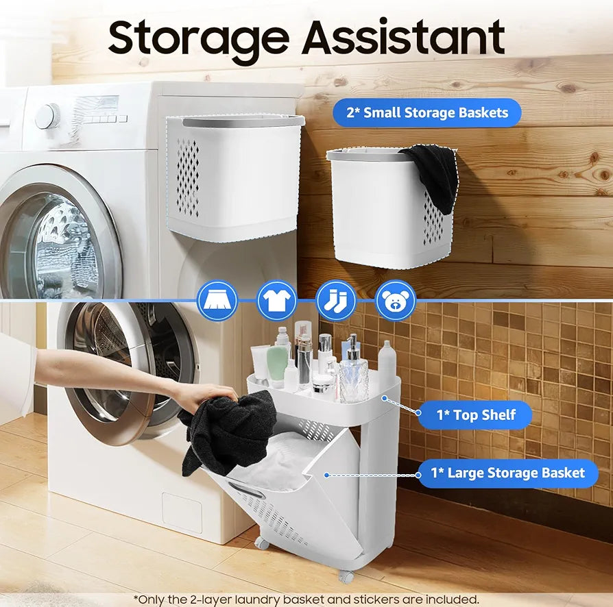 Keep your laundry neat and organized with this space-saving rolling laundry trolley, designed to maximize vertical storage while making sorting effortless. Its smart multi-basket design and smooth mobility make it ideal for bathrooms, bedrooms, and laundry rooms.