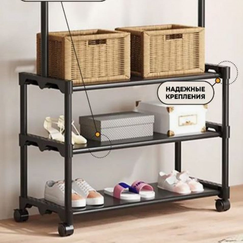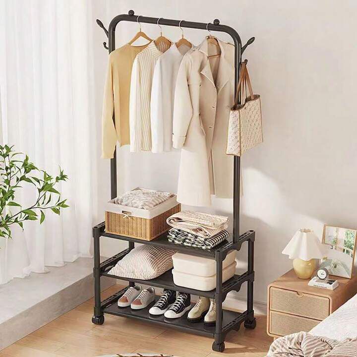 Keep your clothing, shoes, and daily essentials neatly organized with this compact yet high-capacity garment rack. Designed for modern homes, it combines hanging space with multi-tier storage and smooth mobility.