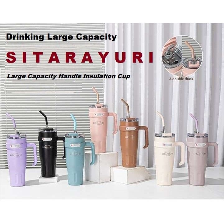 Sitarayuri Coffee Stainless Steel Vacuum Insulated Tumbler With Lid, Straw & Handle 1200ML