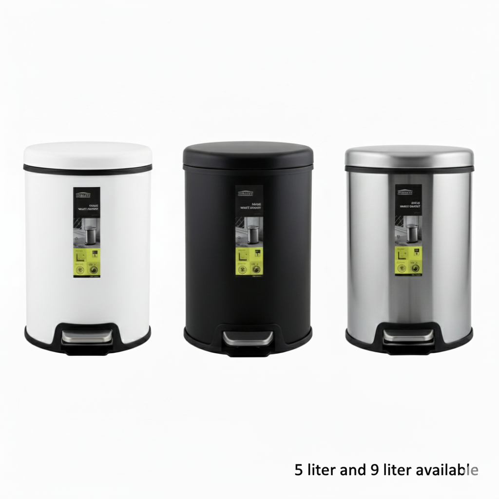 Stainless Steel Hydraulic Pedal Dustbin – 3 Colors (5L & 9L)