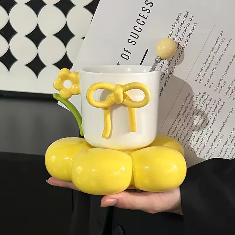 Add a charming touch to your coffee or tea moments with this elegant Sweet Floral Bow Ceramic Mug & Saucer Set. Designed with a delicate 3D bow and a flower-shaped saucer, this set blends beauty with functionality—perfect for everyday use or gifting.