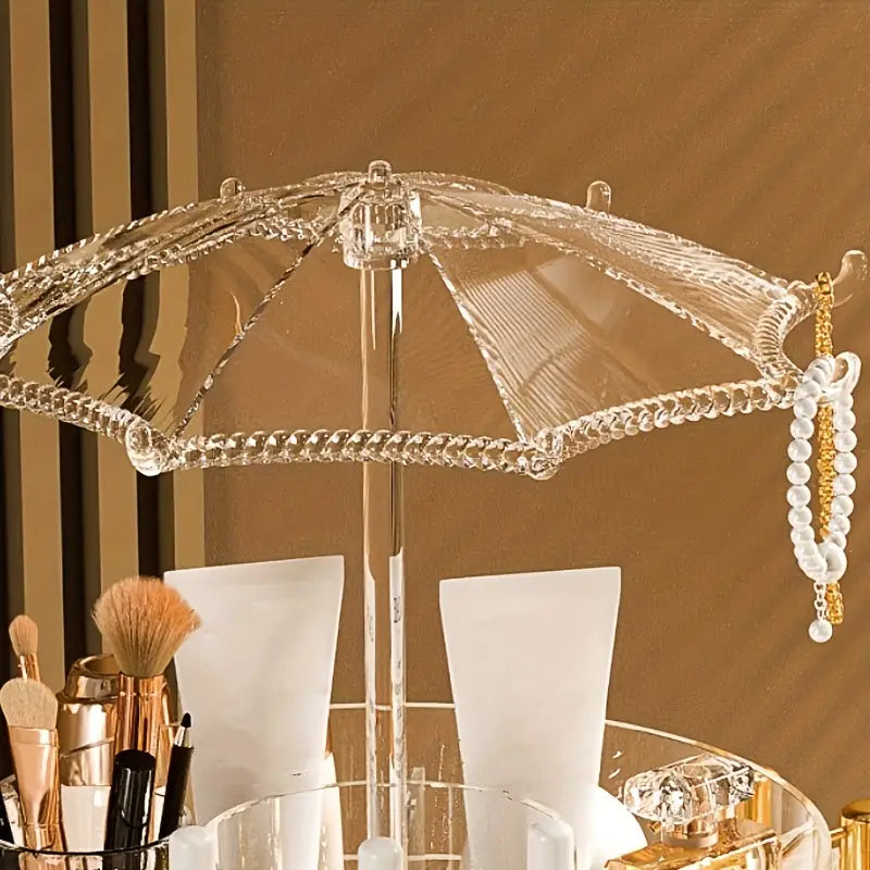 Umbrella Makeup Organizer – Transparent 360° Rotating Cosmetic Storage Box