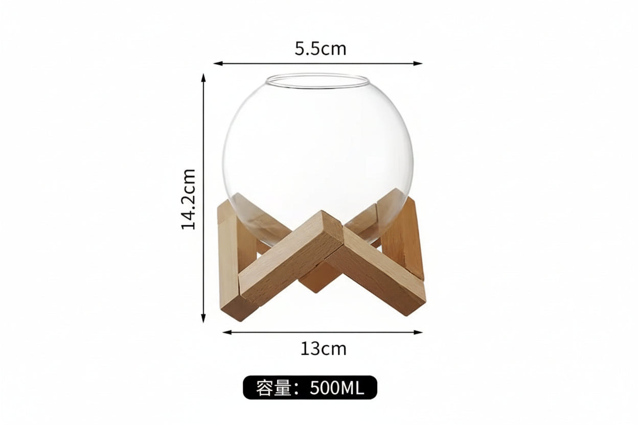 Creative Glass Moon Cup (Orb Shape) with Wooden Stand – 500ml