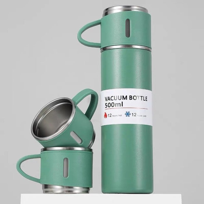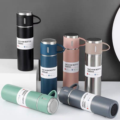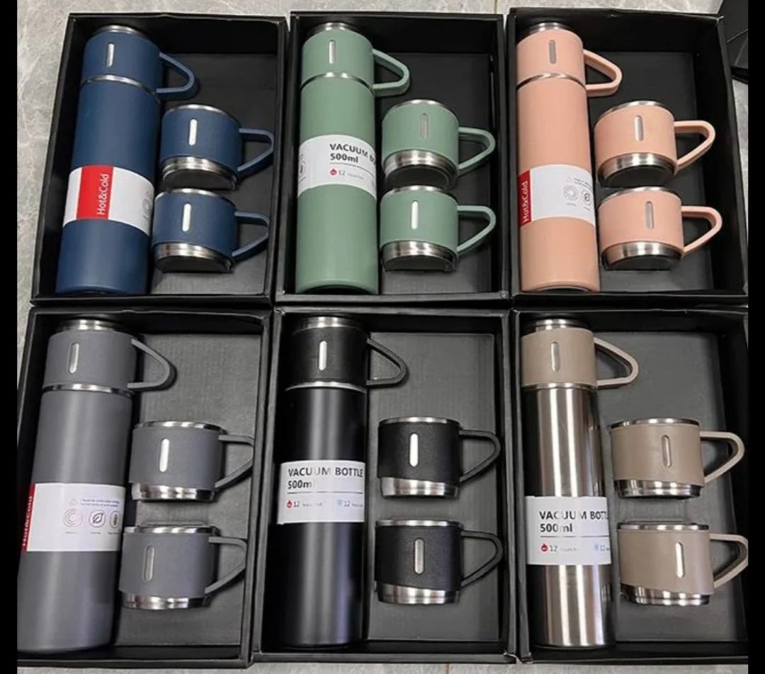 - Capacity: Vacuum Bottle (500ml), 3 Mugs (160ml each)