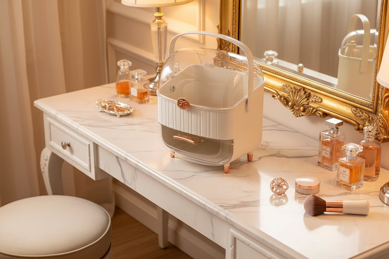 Vanity Cosmetics Storage Box – Dust-Proof Makeup Organizer with Drawers