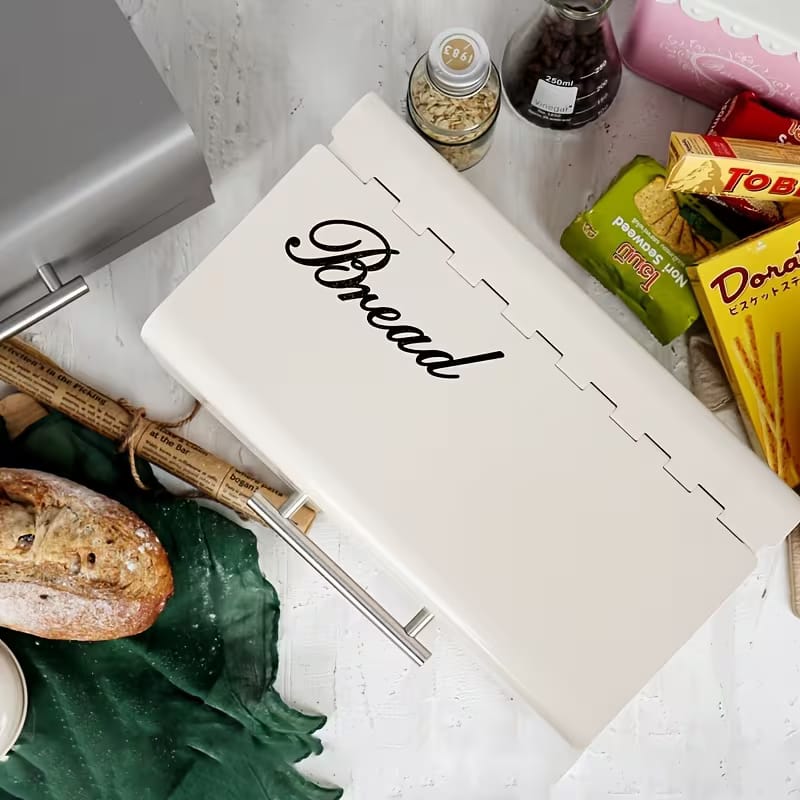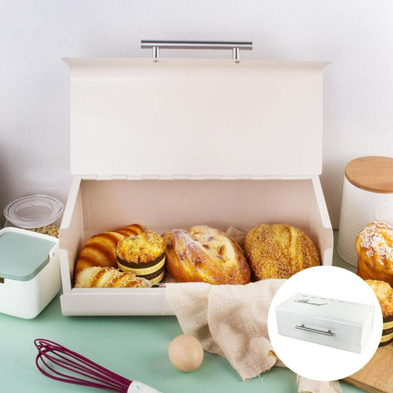Add timeless charm to your kitchen with this vintage-inspired metal bread box. Crafted from durable powder-coated iron with a clean white finish, it keeps bread fresh while elevating your countertop style.